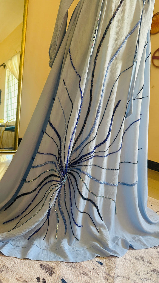 This abaya has sold *2,500+ pieces* and become a mark of our brand! Its stunning *floral handwork* makes it instantly recognizable.