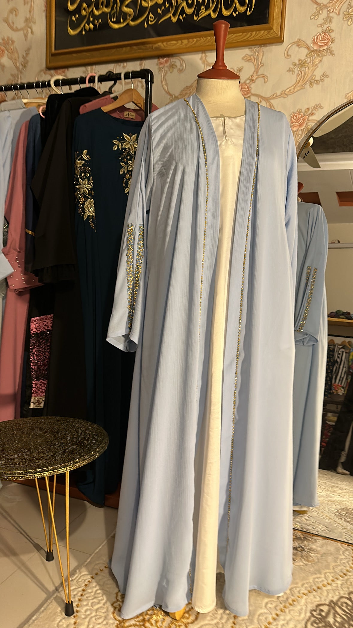 A graceful abaya designed for your serene getaways and special moments — fresh, calm, and beautifully unique.