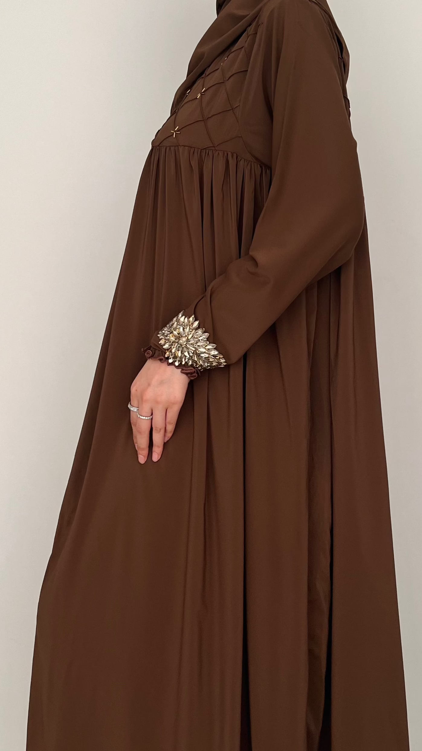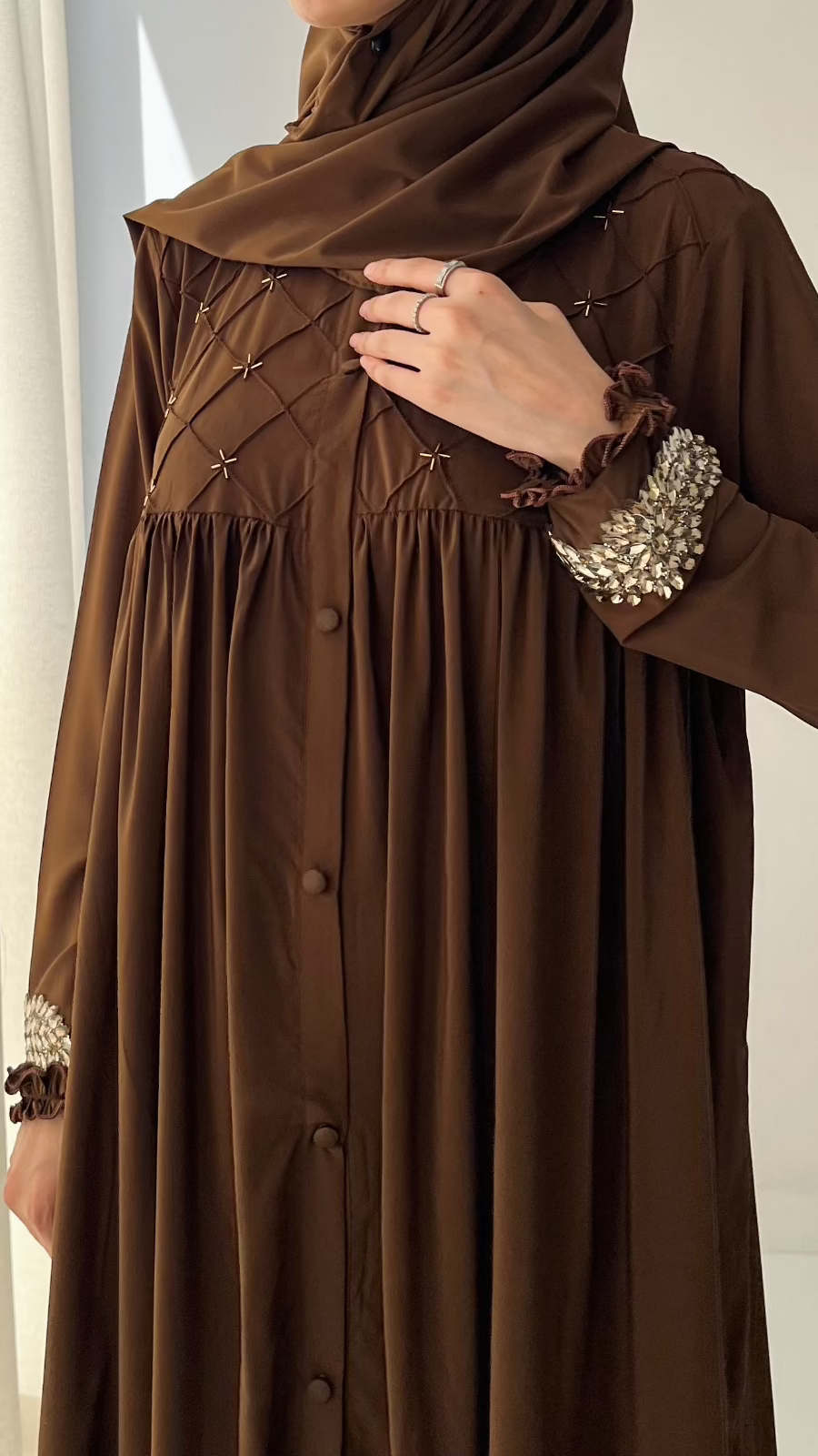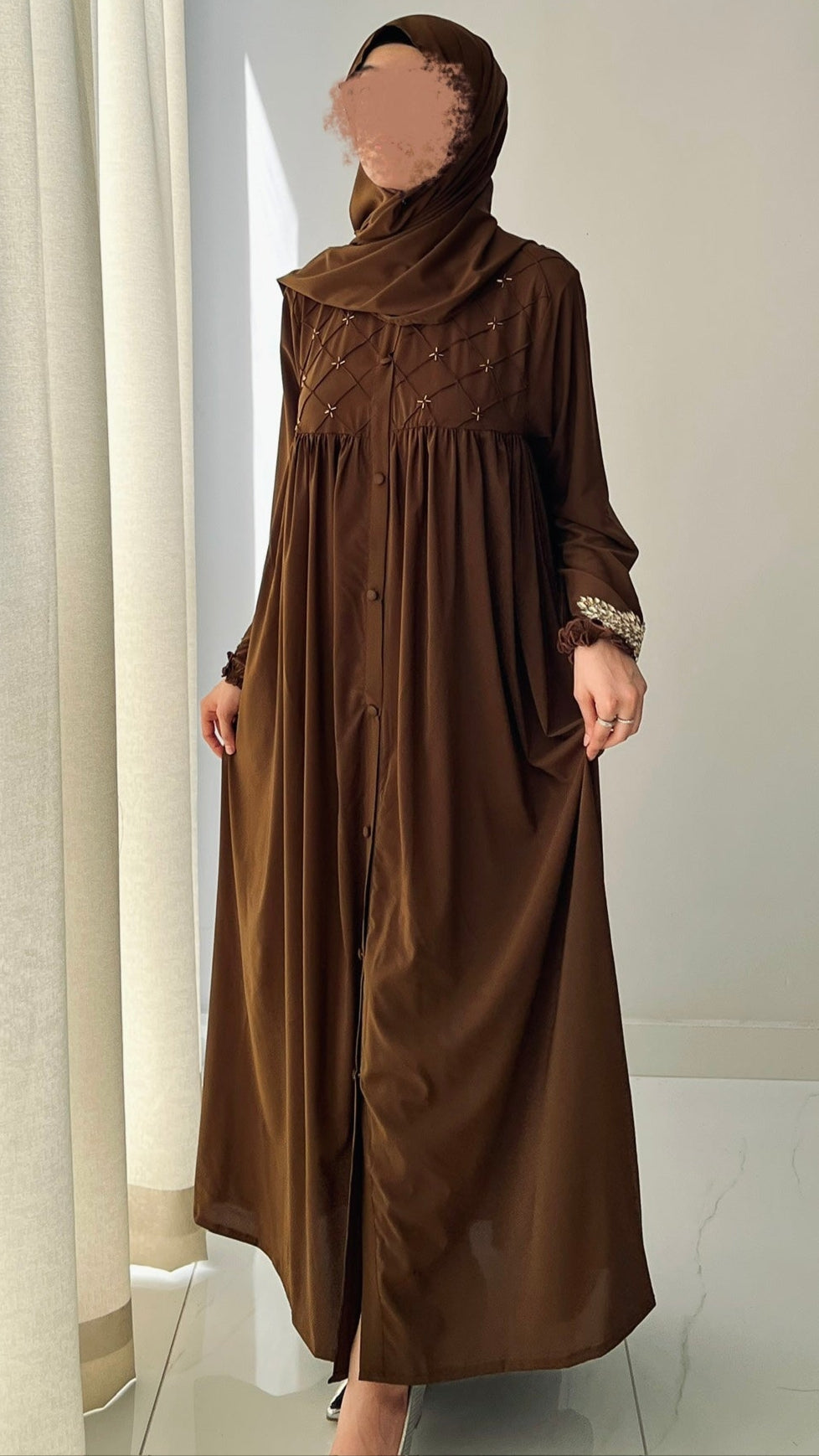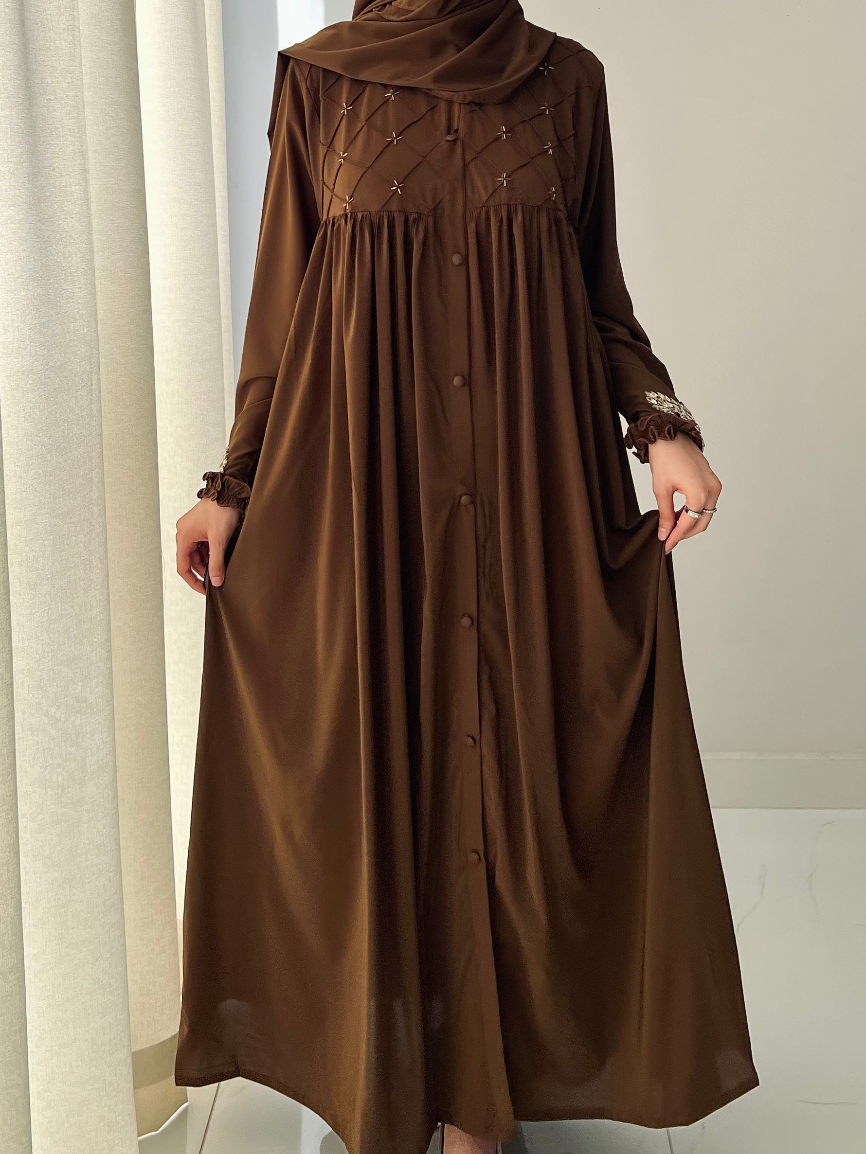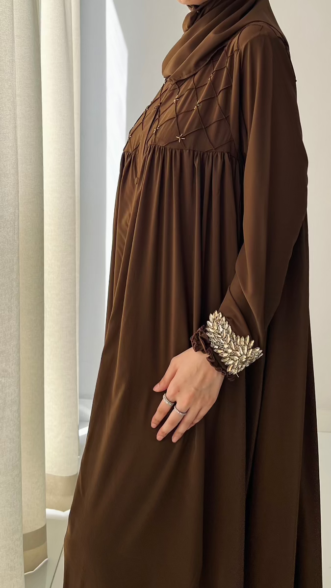 🤎 Our Brown Pin Tucks Abaya blends timeless grace with everyday comfort — a must-have for your modest wardrobe🤎