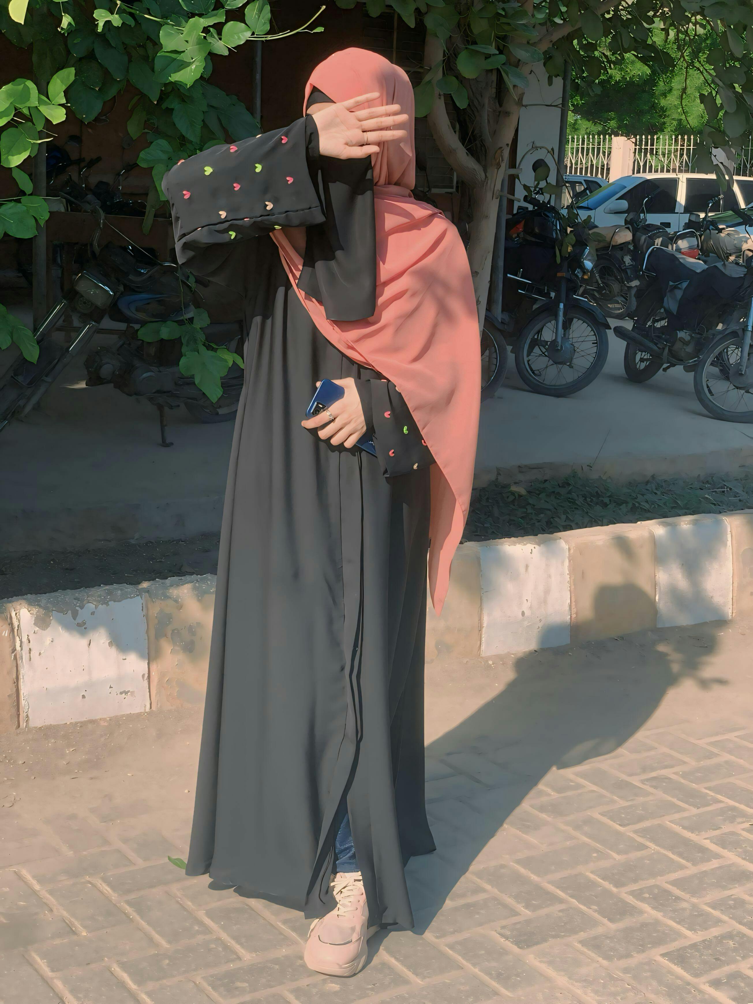 A versatile abaya featuring intricate handwork on the sleeves for a touch of elegance.