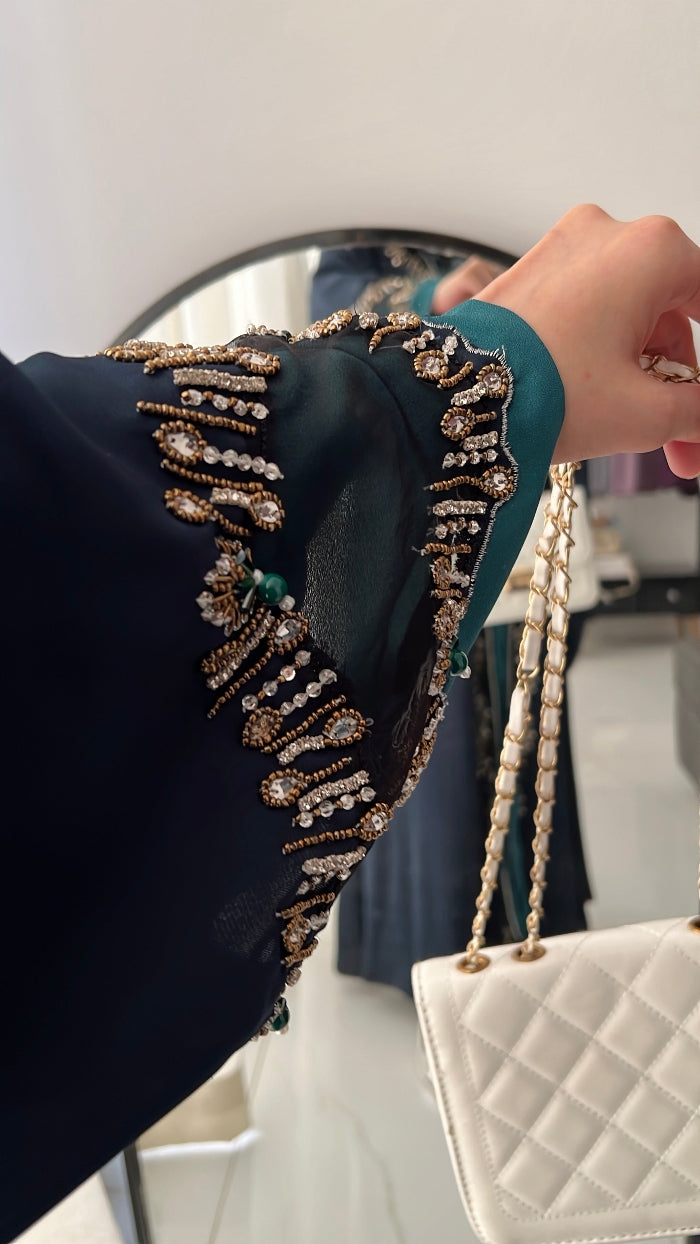 Where teal meets pure luxury, crafted with the finest handwork.