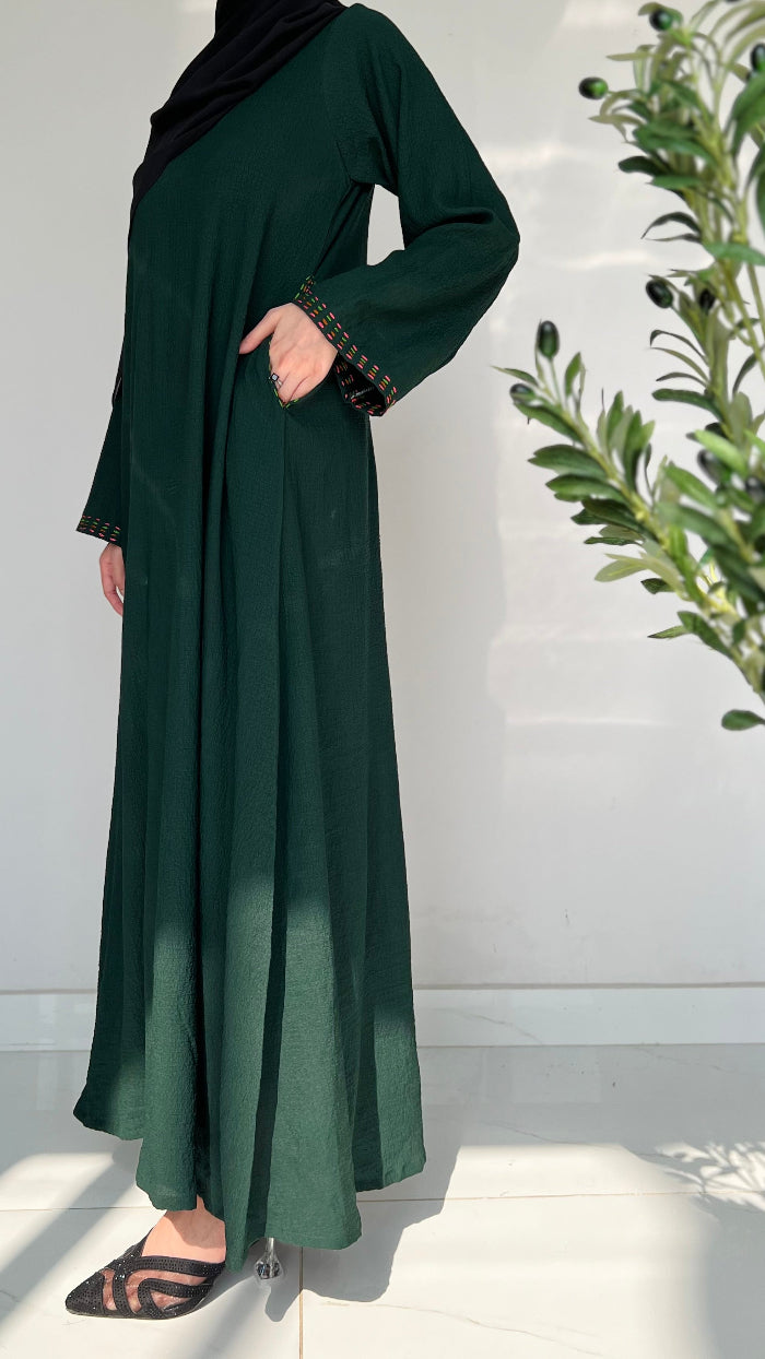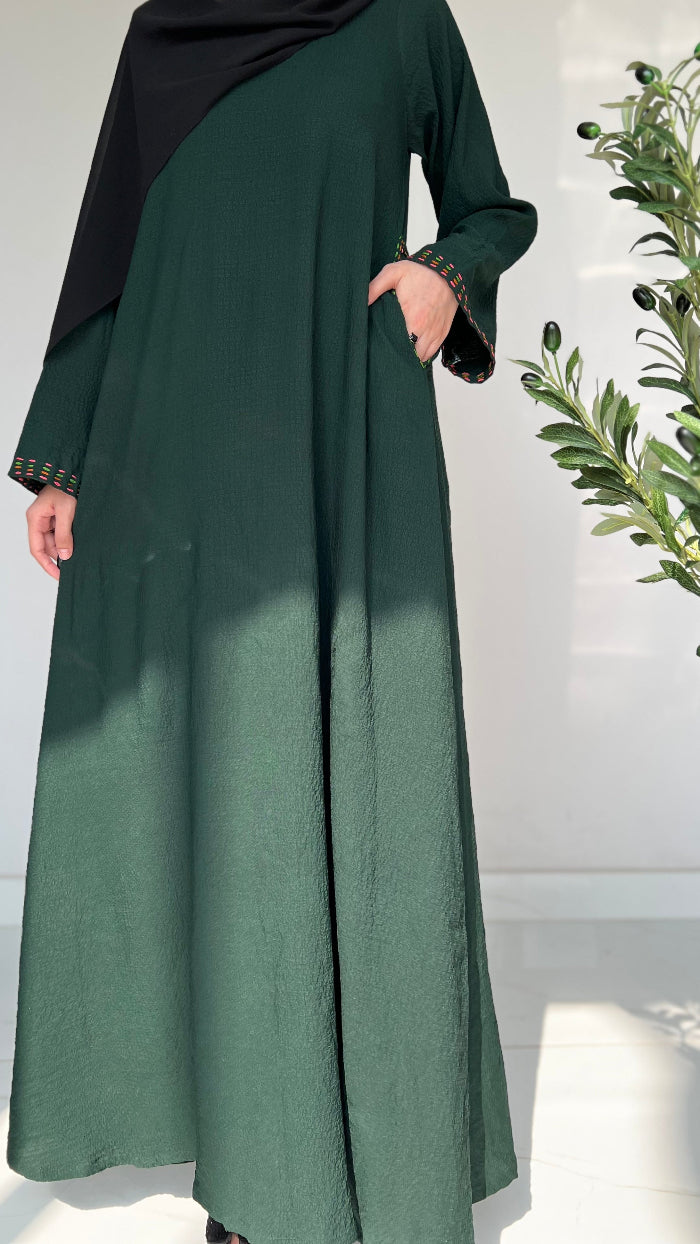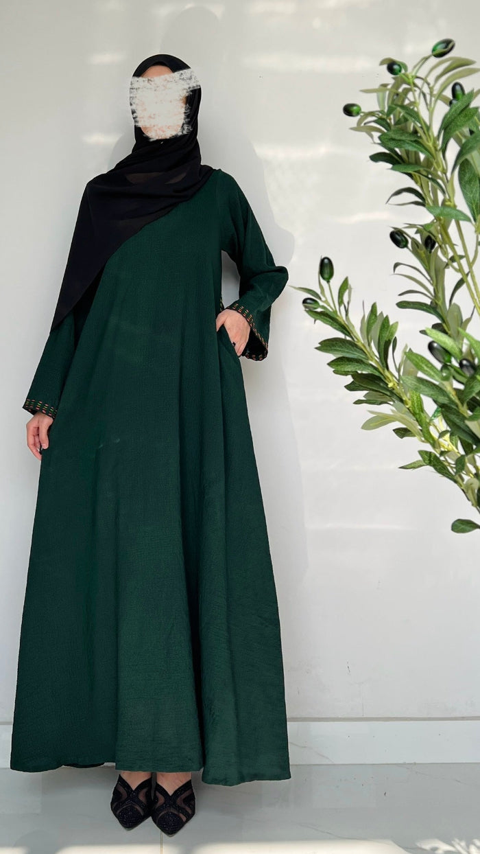 This daily wear abaya is designed for all-day comfort, featuring intricate Hand embroidery on the sleeves and pockets for a touch of style. its for your everyday grace. 🌸